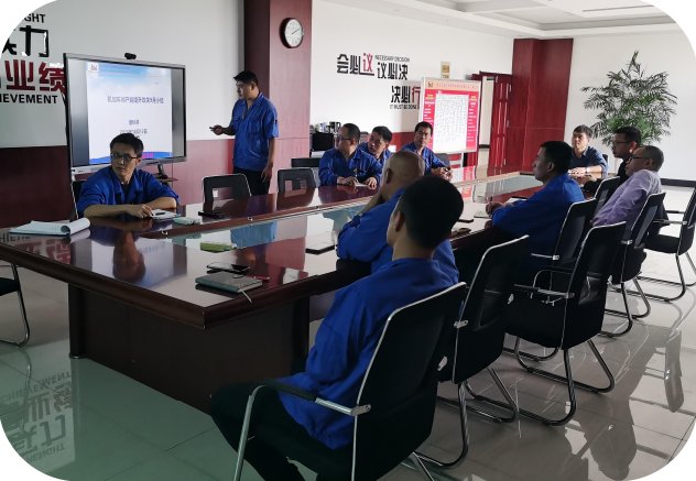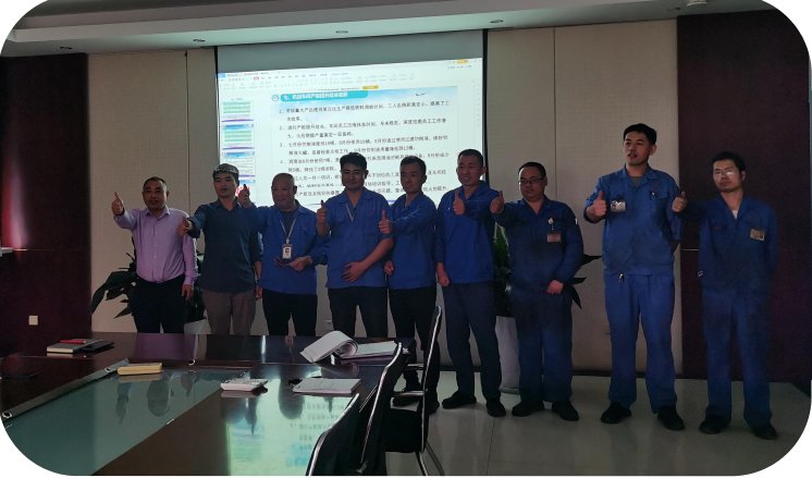会议最后由常务副总王青天同志为机加车间产能提升攻关小组颁发奖励并合 影留念。